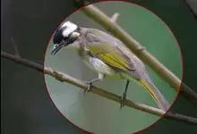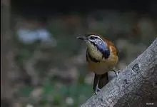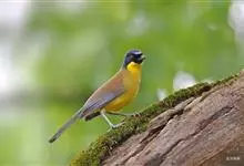 黄喉噪鹛体型略小,顶冠蓝灰色,特征为具黑色的眼罩和鲜黄色的喉。上体褐色,尾端黑色而具白色边缘,腹部及尾下覆羽皮黄色而渐变成白色。黄喉噪鹛隐匿于亚热带常绿林和浓密灌丛,于地面杂物中取食,喜食昆虫,…全部>>