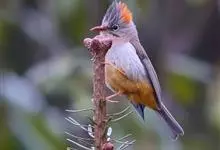 纹喉凤鹛:小型鸟类,体长13-16厘米。头顶和羽冠暗褐色或褐灰色,上体橄榄褐色,飞羽黑褐色,外侧次级飞羽表面橙黄色,构成一块纵形翼斑,极为醒目。颏、喉淡棕白色,具黑色纵纹,腹和尾下覆羽橙黄色。…全部>>