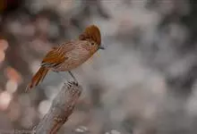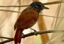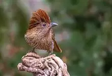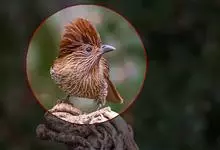 条纹噪鹛是画眉科、噪鹛属中型鸟类,体长28-32厘米。头具短的羽冠,上体栗褐色,飞羽外翻蓝灰色。下体棕栗色,腹以后转为褐白色。除飞羽和尾羽外,所有上、下体羽均具白色羽干纹。极为醒目。野外特征明显,…全部>>