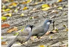 黑顶噪鹛:中型鸟类,体长24-26厘米。前额、脸、颏、喉黑色,头顶黑褐沾棕或深棕橄榄褐色,背栗褐或棕褐色,颧斑白色或棕红色,眼后缘和颈侧亦具白斑,飞羽金黄橄榄色而具蓝灰色尖端。下体淡棕褐色。…全部>>