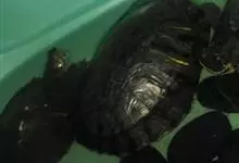 黑颈乌龟是龟鳖目淡水龟科乌龟属爬行动物;别名广东乌龟、广东草龟、黑点龟、黑颈水龟。黑颈乌龟体形较大,头较大,吻钝,略突出于上喙。头顶部黑色,侧面有黄绿色条纹;背甲黑色或棕褐色;中央有一条明显的脊棱,…全部>>
