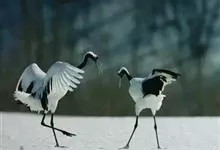 丹顶鹤:是鹤科、鹤属的一种大型涉禽,体长120-160厘米。颈、脚较长,通体大多白色,头顶鲜红色,喉和颈黑色,耳至头枕白色,脚黑色,站立时颈、尾部飞羽和脚黑色,头顶红色,…全部>>