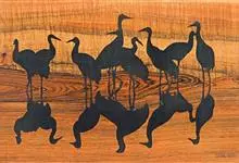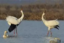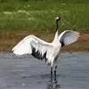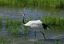 丹顶鹤:是鹤科、鹤属的一种大型涉禽,体长120-160厘米。颈、脚较长,通体大多白色,头顶鲜红色,喉和颈黑色,耳至头枕白色,脚黑色,站立时颈、尾部飞羽和脚黑色,头顶红色,…全部>>