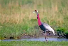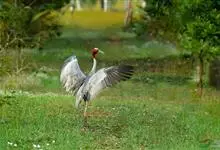 赤颈鹤是大型涉禽,共分化为3个亚种。后趾小而高位,不能与前三趾对握,因此不能栖息在树上;全身羽毛大致呈浅灰色,成鸟颈部裸露红色的皮肤。初级飞羽和初级覆羽为黑色,白色而修长的内侧飞羽垂直的覆盖着尾部。…全部>>