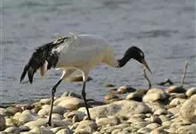 黑颈鹤:是鹤科、鹤属的大型涉禽,体长110-120厘米,体重4-6千克。颈、脚甚长,通体羽毛灰白色,头部、前颈及飞羽黑色,眼先和头顶前方裸露的皮肤呈暗红色,尾羽褐黑色。头顶,三级飞羽的羽片分散,…全部>>
