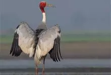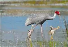 赤颈鹤是大型涉禽,共分化为3个亚种。后趾小而高位,不能与前三趾对握,因此不能栖息在树上;全身羽毛大致呈浅灰色,成鸟颈部裸露红色的皮肤。初级飞羽和初级覆羽为黑色,白色而修长的内侧飞羽垂直的覆盖着尾部。…全部>>