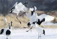 丹顶鹤:是鹤科、鹤属的一种大型涉禽,体长120-160厘米。颈、脚较长,通体大多白色,头顶鲜红色,喉和颈黑色,耳至头枕白色,脚黑色,站立时颈、尾部飞羽和脚黑色,头顶红色,…全部>>