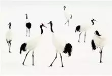 丹顶鹤:是鹤科、鹤属的一种大型涉禽,体长120-160厘米。颈、脚较长,通体大多白色,头顶鲜红色,喉和颈黑色,耳至头枕白色,脚黑色,站立时颈、尾部飞羽和脚黑色,头顶红色,…全部>>
