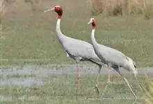赤颈鹤是大型涉禽,共分化为3个亚种。后趾小而高位,不能与前三趾对握,因此不能栖息在树上;全身羽毛大致呈浅灰色,成鸟颈部裸露红色的皮肤。初级飞羽和初级覆羽为黑色,白色而修长的内侧飞羽垂直的覆盖着尾部。…全部>>