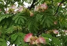 合欢,又名马缨花、绒花树、夜合合等,为豆科合欢属的一种落叶乔木。合欢的树高可达16米,人工特别养护的可达30米,树冠开展;二回羽状复叶,…全部>>
