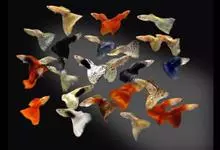 孔雀花鳉 ,俗名孔雀鱼,也称为凤尾鱼、彩虹花鳉、虹鳉、古比鱼等,是花鳉科花鳉属的一种热带鱼,雌雄鱼的体型和色彩差别较大,成年雄鱼身体瘦小,体长3-4厘米,体色绚烂多彩、体型优美;成年雌鱼体长5厘米…全部>>