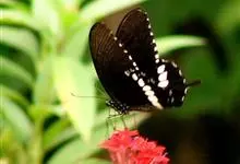 蓝凤蝶,Papilio protenor Cramer,凤蝶科凤蝶属的一种昆虫。翅展95~120mm。翅黑色,有靛蓝色天鹅绒光泽。雄蝶后翅正面前缘有黄白色斑纹,…全部>>