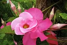 飘香藤 Woodson)是夹竹桃科飘香藤属植物。叶全缘对生,叶片长卵圆形,革质,叶面有皱摺,叶色富有光泽,花腋生,花冠漏斗形,花为红色、桃红色、粉红色等。初春到深秋几乎全年花开。原产美洲热带。…全部>>