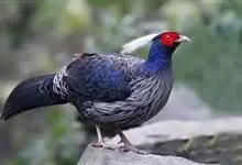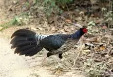 黑鹇是鸡形目雉科目鹇属鸟类,又称鸬雉、黑鸡。体型中等。雄鸟上体黑褐色,背羽具黑紫色金属光泽;头顶具黑羽冠;脸部裸皮呈红色,散生稀疏黑色纤羽;尾长而侧扁,中央两对尾羽红褐色,…全部>>