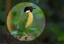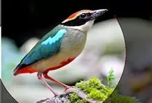 绿胸八色鸫:是雀形目八色鸫科的鸟类,共有12个亚种。体长为16-18厘米,体重65-69克。体型圆胖,尾短,腿长。头黑,上体绿色,两翼深色而具白色斑纹,头顶至后枕深褐,胸及腹部苹果绿,臀亮红。…全部>>