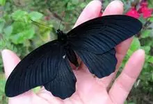 蓝凤蝶,Papilio protenor Cramer,凤蝶科凤蝶属的一种昆虫。翅展95~120mm。翅黑色,有靛蓝色天鹅绒光泽。雄蝶后翅正面前缘有黄白色斑纹,…全部>>