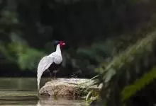 白鹇,是鸡形目雉科鹇属的一种留鸟。雄鸟上体白色并具黑色纹,下体黑色,头顶具黑色长羽冠,尾白而长;雌鸟体型较小,以橄榄褐色为主,下体具白色或皮黄色细纹;虹膜褐色,眼周具红色裸皮,喙黄色,脚鲜红色。…全部>>