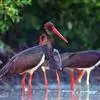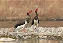 黑鹳是鹳形目鹳科鹳属鸟类,俗称乌鹳、钢鹳、老鹤。黑鹳头、颈和脊均呈黑褐色,故名黑鹳。黑鹳上体羽黑色、并带有绿紫色金属光泽,胸腹部羽白色;嘴、腿均红色;两性相似;成鸟嘴长而直,基部较粗,…全部>>