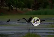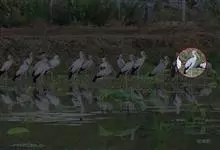 黑头鹮鹳:大型涉禽。体长102厘米,翼展150-175厘米,体重2050-2640克。寿命10年。嘴长而粗壮,飞时头颈伸直。雌雄相似。成鸟上体白色,下体白色。翼下覆羽有黑色横带,具绿色光泽和白色羽缘。…全部>>
