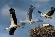 白鹳,是鹳形目鹳科鹳属鸟类。白鹳曾确定为3个亚种:指名亚种、中亚亚种和东方亚种。其体长约111厘米。嘴形直、粗厚而侧扁;体羽除飞羽黑色具铜绿色金属光泽外,余部均为白色;眼周裸区、脚、趾红色,嘴黑色。…全部>>