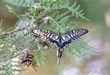 玉带凤蝶是鳞翅目凤蝶科凤蝶属昆虫,又称白带凤蝶、黑凤蝶、缟凤蝶、梁山伯凤蝶。雄蝶前翅外缘、后翅中央有7个大型黄白斑,排列成带。老熟幼虫深绿色,头部黄褐色,后胸前缘有1条齿状的黑色线状横纹,…全部>>