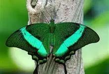 碧翠凤蝶,Papilio bianor Cramer,凤蝶科凤蝶属的一个物种。形态 成虫:翅展90—135 mm。体、翅黑色,满布翠绿色鳞片,在脉纹间更集中,已表现出翠绿带。…全部>>