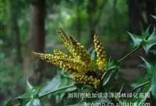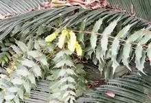 十大功劳 Fedde),小檗科十大功劳属常绿灌木植物。叶子较大且较多,呈椭圆形,绿色,表面光滑无毛,叶柄较长;花朵较小,呈多边形,黄色,花瓣对称分布,表面有绒毛;果实呈圆形,褐色,…全部>>