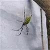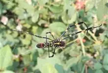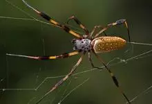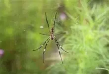 棒络新妇,是蜘蛛目肖蛸科络新妇属节肢动物。雄蛛体长约6毫米,背甲褐色,具黑色纵斑;步足黑色,有橙色环纹;腹部筒形、褐色,有黄斑;雌蛛体长约21毫米,背甲黑色,有大量银色长毛;触肢黄色,步足黑色,…全部>>