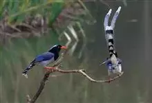 红嘴蓝鹊,别名山鹊、长尾鹊,是鸦科蓝鹊属的一种观赏性较强的大型鸣禽。该物种为体长54~65cm,头、颈、喉和胸黑色,头顶至后颈有一块白色至淡蓝白色或紫灰色块斑,其余上体紫蓝灰色或淡蓝灰褐色。尾长呈凸状,…全部>>
