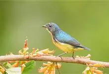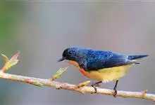 红胸啄花鸟:体重5-10克,体长60-92毫米。体形纤小。雄鸟上体呈辉亮的金属绿色;下体棕黄,胸部具一朱红色块斑,极易与其他啄花鸟区别。雌鸟上体呈橄榄绿,下体棕黄色。虹膜褐色,嘴褐黑色或角灰色,…全部>>