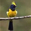 冕雀:共有4个亚种。体长20-21厘米,体重34-49克。具蓬松的黄色长型冠羽。雌鸟似雄鸟,但喉及胸深橄榄黄色,上体沾橄榄色。不会被误认的体大的黄色及黑色山雀。混群栖于原始林及次生林的林冠层,…全部>>