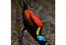 大极乐鸟是极乐鸟属中最大的鸟种。成年雄鸟体长可达到43厘米,雌性可达35厘米。雄鸟的额、颊、喉等墨绿色;头、颈黄色;上体暗赤栗色;腹部葡萄红色,胁部有长饰羽,其基部橙黄,中部黄色,…全部>>