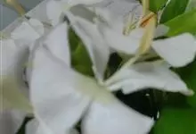 姜花又名野姜花。是姜科姜花属的多年生草本植物,茎高1-2米;叶片长圆状披针形或披针形,叶面光滑,叶背被短柔毛;穗状花序顶生,椭圆形,花芬芳,白色;蒴果卵状三棱形,微黄绿色;种子鲜红色,具橘红色的假种皮。…全部>>
