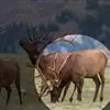 麋鹿是鹿科、麋鹿属唯一的鹿类动物。因为它头脸狭长像马、角像鹿又与其它鹿略有不同、蹄子宽大像牛、尾细长像驴,因此又名四不像。它的角形独特,形状与其它鹿的犄角正好相反,前杈再分小杈,而后杈几乎不分叉。头大,…全部>>