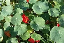 旱金莲是旱金莲科旱金莲属蔓生一年生草本植物。叶互生,叶柄向上扭曲,盾状,叶圆形,具波状浅缺刻,下面疏被毛或有乳点;花黄、紫、桔红或杂色,花托杯状,花瓣为圆形,边缘具缺刻;果实为扁球形;花果期6-10月,…全部>>