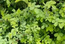 金叶女贞是木樨科女贞属木本植物。叶片为革,椭圆形或卵状椭圆形,新叶金黄色,老叶黄绿色至绿色;花为两性,呈筒状白色小花;果实为椭圆形,内含一粒种子,颜色为黑紫色。花期5—6月,果期10月。…全部>>