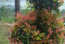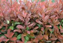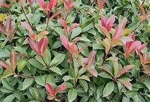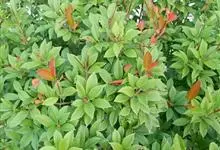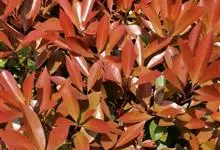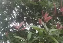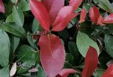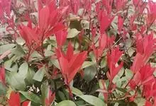 红叶石楠 是蔷薇科,石楠属杂交种,为常绿小乔木或灌木,乔木高可达5米、灌木高可达2米。叶片革质,长圆形至倒卵状、披针形,叶端渐尖,叶基楔形,叶缘有带腺的锯齿,花多而密,复伞房花序,花白色,梨果黄红色,…全部>>