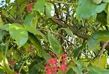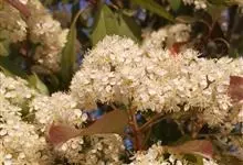 石楠 Kalkman),是蔷薇科石楠属的常绿乔木,高5~12米,株型紧凑,树冠圆球形。树枝为褐灰色;鳞片为褐色,没有毛;叶片革质,长椭圆至侧卵状椭圆形,有锯齿,新叶红色光亮。复伞房花序,白色小花,…全部>>