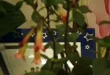 倒挂金钟是柳叶菜科倒挂金钟属亚灌木植物。茎直立,多分枝;幼枝带红色,被短柔毛与腺毛,老时渐无毛;叶对生,卵形或窄卵形,脉常带红色;常带红色,被短柔毛与腺毛;花筒红色,筒状钟形,…全部>>