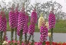 毛地黄是车前科、毛地黄属一年生或多年生草本植物。株高0.5—1米,茎直立,少分枝,全株被灰白色短柔毛和腺毛叶基生,呈莲座状,卵圆形或卵状披针形。顶生总状花序,花冠钟状,紫红色,内面有浅白斑点。菊果卵形。…全部>>