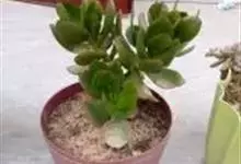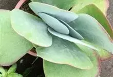 唐印为景天科伽蓝菜属的多年生肉质草本植物。植株中型,株高50厘米,宽20厘米,多分枝;叶片肉质,对生,卵形,全缘,先端钝圆,叶片淡绿色至灰绿色,表面被有厚厚的白粉,光照充足时,叶缘呈红色;圆锥花序,…全部>>