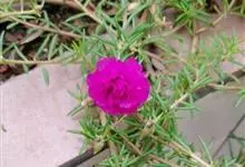 大花马齿苋:一年生草本,高10-30厘米。茎平卧或斜升,紫红色,多分枝,节上丛生毛。叶密集枝端,较下的叶不规则互生,叶片细圆柱形,无毛。花单生或数朵簇生枝端,直径2.5-4厘米,…全部>>