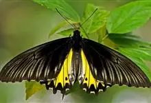 荧光裳凤蝶是凤蝶科裳凤蝶属的一种大型蝴蝶,该物种共有3个亚种。该蝶飞翔的时候姿态优美,前翅黑色,后翅金黄色和黑色交融的斑纹在阳光照射下金光灿灿,显得华贵美丽。幼虫寄主为多种马兜铃属的植物,取食马兜铃…全部>>