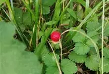 蛇莓 Teschem.),别名三爪凤、龙吐珠、东方草莓等,为蔷薇科蛇莓属的多年生草本植物。其根茎短,粗壮;匍匐茎多数;小叶片倒卵形至菱状长圆形;托叶窄卵形至宽披针形;花单生于叶腋,花瓣倒卵形,…全部>>