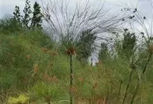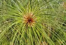 纸莎草是莎草科、莎草属的植物,具有粗壮的根状茎,高达2-3米,茎秆簇生,粗壮,直立,钝三棱形。叶退化呈鞘状,茎秆顶端着生总苞片,呈伞状簇生,总苞片叶状,披针形,顶生花序伞梗极多,细长下垂。瘦果灰褐色,…全部>>