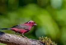 酒红朱雀小型鸟类,体长13~15厘米。雄鸟通体深红色,头部深朱红或棕红色,下背和腰玫瑰红色,眉纹粉红色而具丝绢光泽。两翅和尾黑褐或灰褐色、具暗红色狭缘,内侧两枚三级飞羽具淡粉红色先端。…全部>>