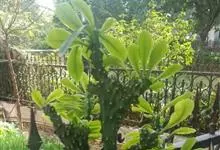 金刚纂,是大戟科大戟属的肉质灌木状小乔木。茎圆柱状,上部多分枝,叶片互生,少而稀疏,顶端钝圆,基部渐狭;花序二歧状腋生,苞叶膜质,总苞阔钟状,裂片半圆形,边缘具缘毛,雄花多枚;花期6-9月。…全部>>