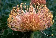 帝王花,山龙眼科帝王花属多年生常绿灌木植;茎干粗壮,叶色翠绿光亮;花朵呈圆球状;其苞片有的完全打开,使花朵呈扁平状;有的则呈半闭合状态,使花朵相对修长,…全部>>