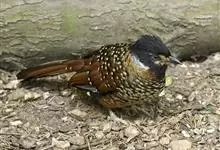 眼纹噪鹛为画眉科噪鹛属的鸟类。中型鸟类,体长30-34厘米。头、颈黑色,脸、眉纹和颏茶黄色,上体棕褐色满杂以白色、黑色和皮黄色斑点,飞羽具白色端斑,尾具白色端斑和黑色亚端斑。喉黑色,胸棕黄色具黑色横斑。…全部>>