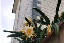 量天尺 Britton & Rose),是仙人掌科蛇鞭柱属的攀援肉质灌木,别名火龙果、三角柱、三棱箭、霸王鞭等。茎粗壮,有常呈翅状的棱,深绿色至淡蓝绿色;小窠沿棱排列,有硬刺。花漏斗状,瓣状花被片白色。…全部>>